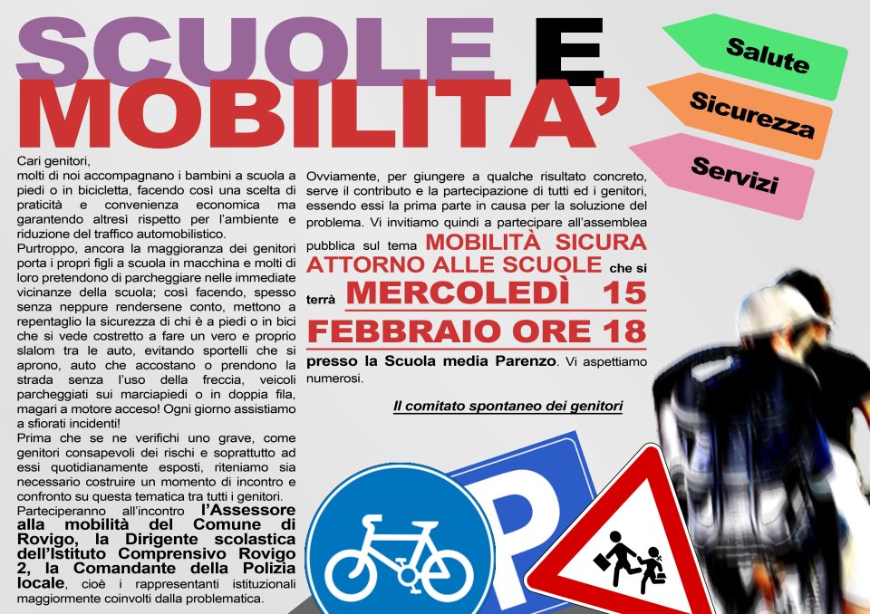 Il comitato genitori ha organizzato per mercoledì 15 febbraio alle ore 18.00 presso la scuola media Parenzo un incontro con l’Assessore alla mobilità e la comandate della polizia municipale del Comune di Rovigo. Scopo dell’incontro è discutere sulle possibili soluzioni di sicurezza per gli studenti nei percorsi casa-scuola. Vedi video (link su youtube)A Bolzano, da decenni hanno inventato le “strade scolastiche”: si tratta di strade ordinarie che, gravitando nei pressi di un plesso scolastico, negli orari di entrata e uscita dei ragazzi, diventano a divieto di transito per i veicoli a motore, INCLUSI i residenti.