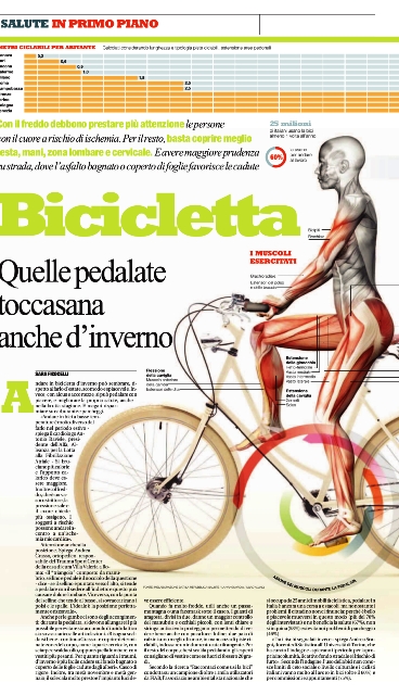 Il supplemento Salute de La Repubblica del 30.10.2012 ha dedicato uno speciale ai benefici della bicicletta con trucchi e consigli per il suo uso invernale.