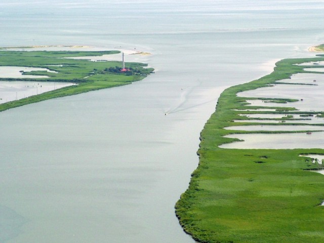 Dalle bocche del Po di Pila alla grande Foce. Navigazione nel ramo principale del Delta attraverso golene e canneti fino a Scano Boa tra lagune, tracce di bonifiche ed i casoni. Sbarco sulla spiaggia incontaminata.