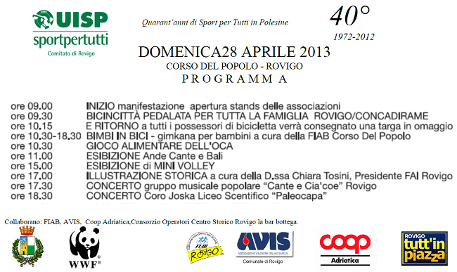 La manifestazione è organizzata in collaborazione con la Uisp Comitato provinciale di Rovigo in occasione di Bicincittà 2013.