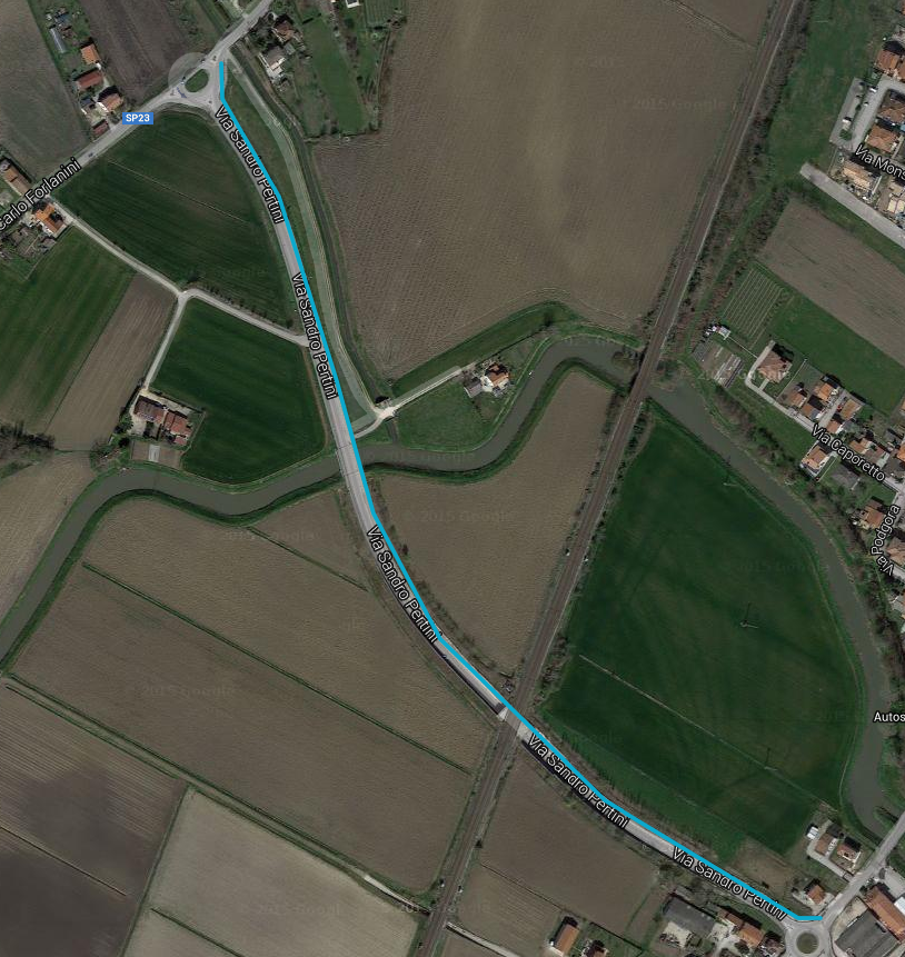 Descrizione: La ciclopedonale di via Sandro Pertini congiunge via Vittorio Veneto (quartiere Tassina e zona artigianale) con via Forlanini (Pestrina Busa) in una zona a scarsa densità abitativa. Costeggia la carreggiata ed è protetta da un guardrail.