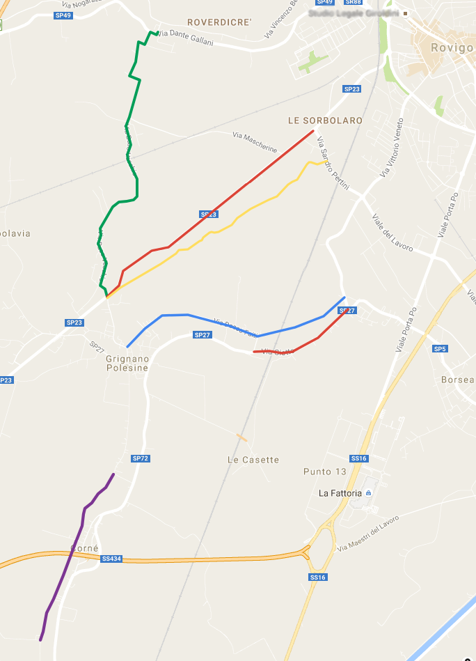 Grignano è una frazione di Rovigo di almeno 3000 abitanti tra le più popolose del nostro Comune. Dista dal centro città poco più di 5 km in linea d’aria. La frazione è costretta tra due, strette, strade regionali SP23 (via Carlo Forlanini) e SP27 (via Giotto) che sono anche le principali, dirette e buie vie d’accesso, dalla città, alla frazione e quindi attraversate da un traffico sostenuto inadatte ad un traffico ciclistico.