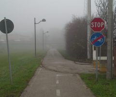 Ulteriore punto curioso lo si ha dove il percorso tocca via Umberto Giordano qui nella pratica il percorso prosegue verso Roverdicrè costeggiando l’Adigetto ma la segnaletica verticale ci dice che si tratta di un percorso diverso ed esclusivamente ciclabile.
