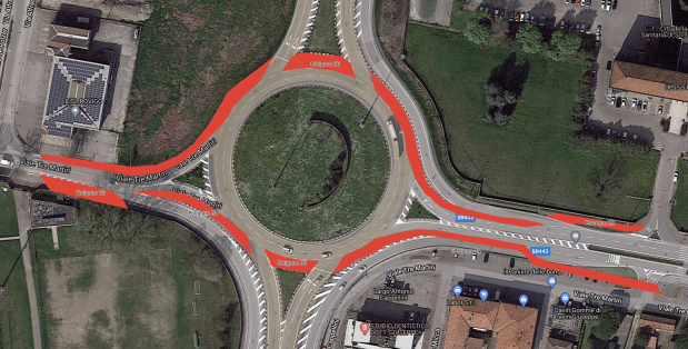 Una soluzione questa che forse non verrà mai presa in considerazione da Veneto Strade che gestisce quel tratto. Eppure la precedente amministrazione comunale, nel lontano 2017, ha fatto rimuovere gli archetti lungo i cordoli della rotatoria, motivandola proprio dalla necessità di tutelare l’incolumità dei ciclisti che attraversano la stessa. L’inserimento delle corsie ciclabili sarebbe anche una soluzione che avrebbe l’indubbio vantaggio di restringere la rotatoria e quindi di rallentare le auto che poi, sistematicamente, si infilano in Viale Tre Martiri non rispettando mai il simbolico limite dei 30km/h, con il risultato di continui incidenti per pedoni e ciclisti in questi tratti di strada.
