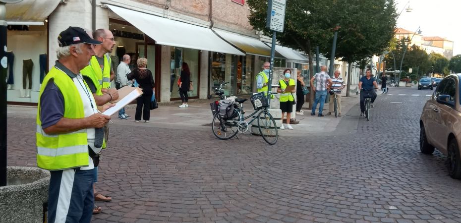 Venerdì 17 settembre 2021 i volontari FIAB, in occasione della Settimana Europea della Mobilità, sono tornati sul Corso del Popolo (incrocio con via Laurenti e via Trento) per censire, con un contapassaggi, quanti veicoli circolano su questo incrocio e definire così la ripartizione modale dei trasporti in questo punto centrale della città.