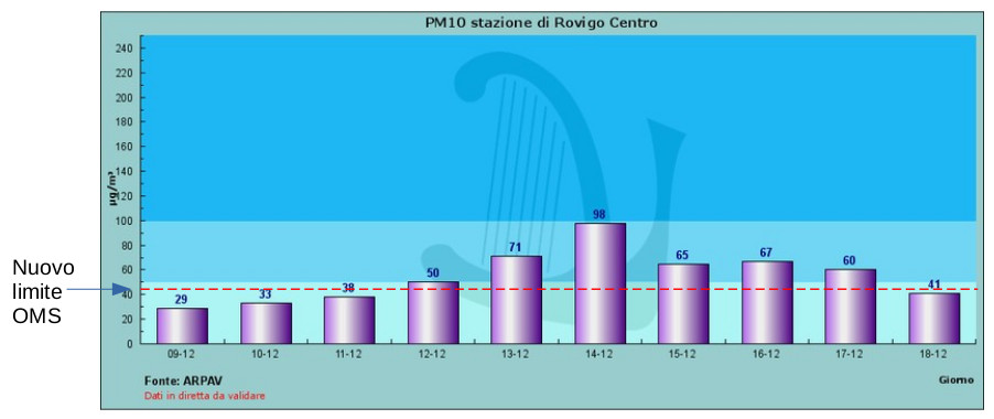 Limiti che l’OMS ha recentemente rivisto a ribasso, portando da 50 a 45 μg/m3 il livello massimo giornaliero di concentrazione di Pm10 nell’aria e a cui il Ministero dell’Ambiente sembra volersi uniformare.