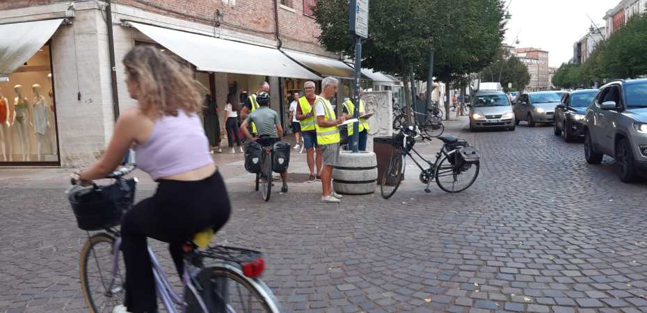 Venerdì 16 settembre 2022 i volontari FIAB, in occasione della Settimana Europea della Mobilità, sono tornati sul Corso del Popolo (incrocio con via Laurenti e via Trento) per censire, con un contapassaggi, quanti veicoli circolano su questo incrocio e definire così la ripartizione modale dei trasporti in questo punto centrale della città.