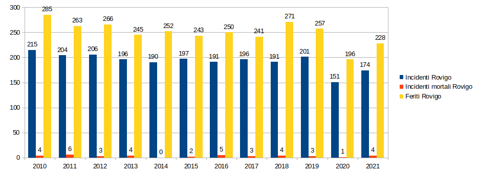 Il primo dato da osservare riguarda il numero dei sinistri avvenuti nella Provincia di Rovigo.