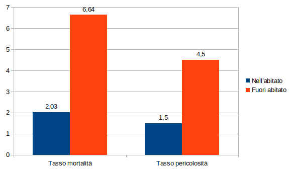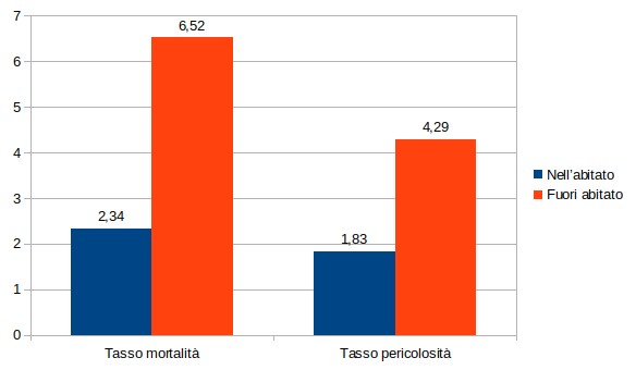 Ma con tassi di pericolosità e mortalità che, anche in questo caso, sono rispettivamente il doppio e il triplo nell’ambito fuori dell’abitato rispetto all’urbano.