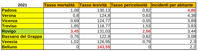 Per dare avere una ulteriore misura di questi dati, è necessario fare un confronto con le altre Province venete e, purtroppo, la nostra non ne esce affatto bene.