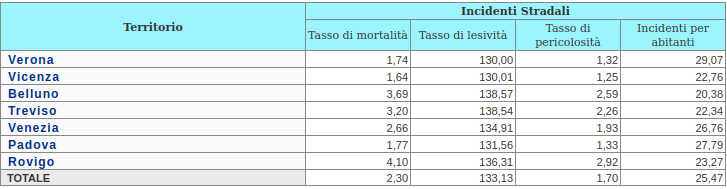 Come ogni anno in prossimità della Giornata mondiale in memoria delle vittime della strada, il prossimo 20 novembre, vengono pubblicati i dati relativi all’incidentalità in Veneto. Dati fondamentali per comprendere anche le dinamiche locali.