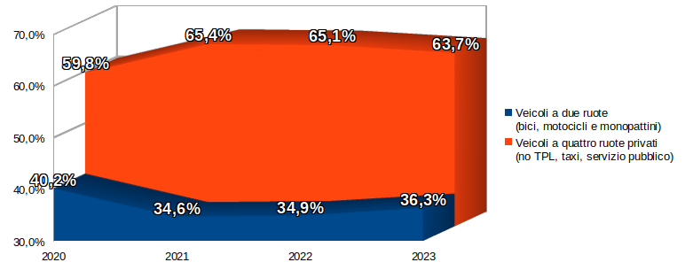 – veicoli a due ruote (motocicli, bici e monopattini), poco sopra il 36% del totale