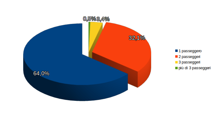 Spostando il focus sul traffico a quattro ruote, analizzando il numero di passeggeri trasportati, emerge in modo forte la sua inefficienza. Con una media di 1,4 passeggeri per veicolo perfettamente in linea con la tendenza italiana: molte auto, pochi passeggeri.