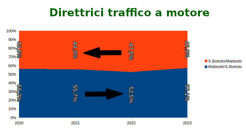 Appare evidente però come la direttrice che ha presentato un traffico più intenso (da piazza Matteotti in direzione S.Bortolo) abbia registrato una maggiore concentrazione di Pm10.