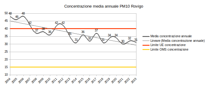 In questi giorni di gennaio di aria di scarsa qualità per una importante presenza di polveri sottili è il momento giusto per chiederci: come sono andate le concentrazioni di Pm10 nel 2023 a Rovigo?