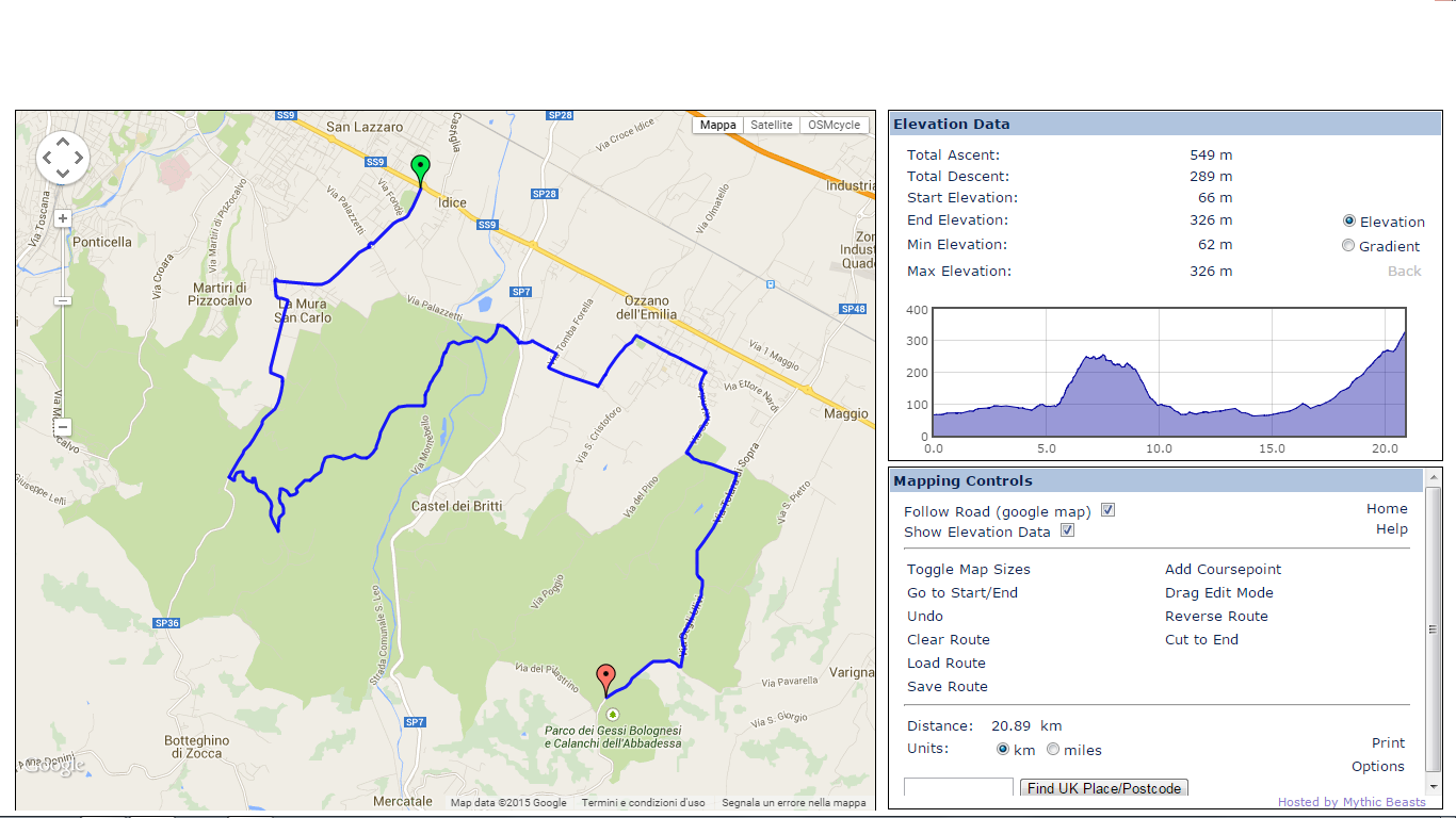 Intinerario primo giorno e altimetrie e intinerario secondo giorno e altimetrie